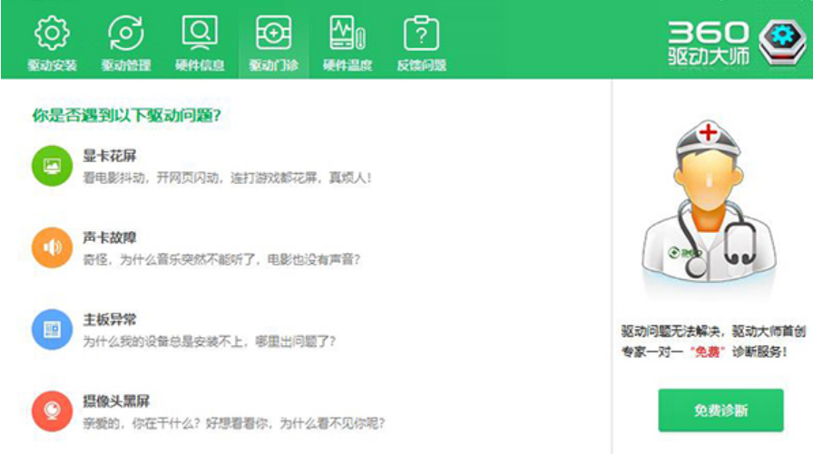 5、如果装完驱动的时候还是觉得驱动有问题的话就点击一下驱动门诊来检修一下驱动。