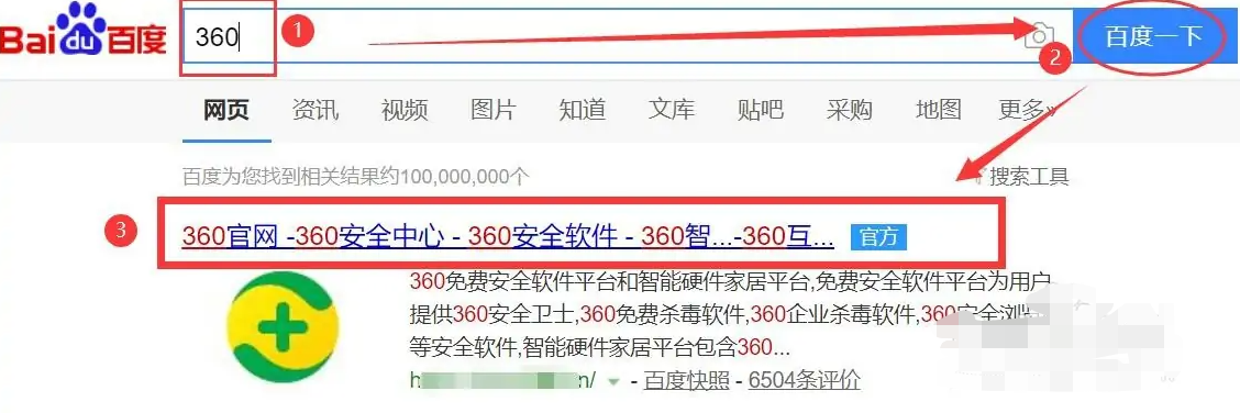 1、打开电脑上的任意浏览器,点击搜索框输入“360”进行搜索,点击带有官方的网站进入。