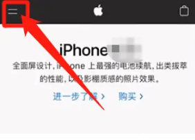 1、首先打开手机苹果官网进入页面,点击左上角二横图标进入其中。