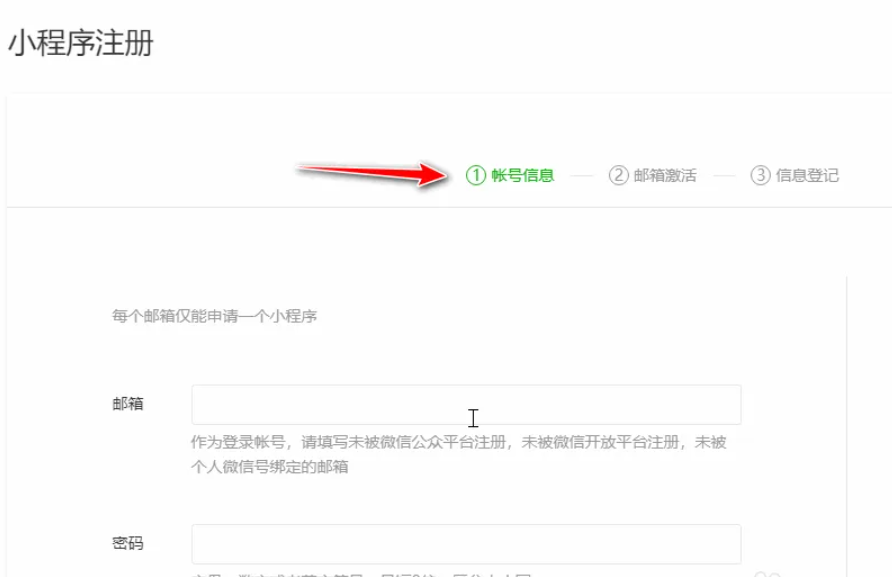 5、按照流程依次填写账号信息,通过邮箱激活,最后信息登记。