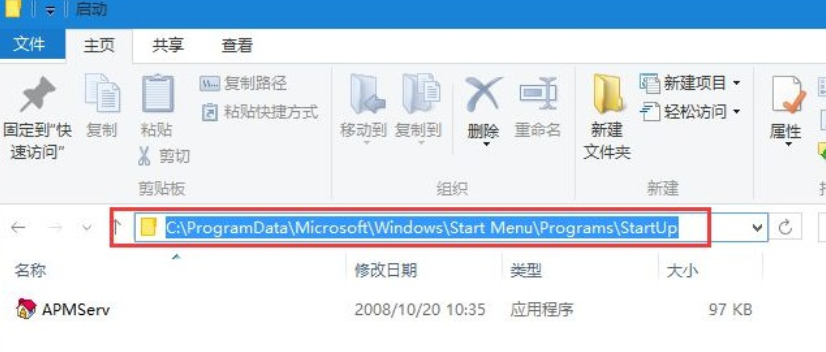 4、 也可以输入“%programdata%\Microsoft\Windows\Start Menu\Programs\Startup”回车即可打开启动文件夹