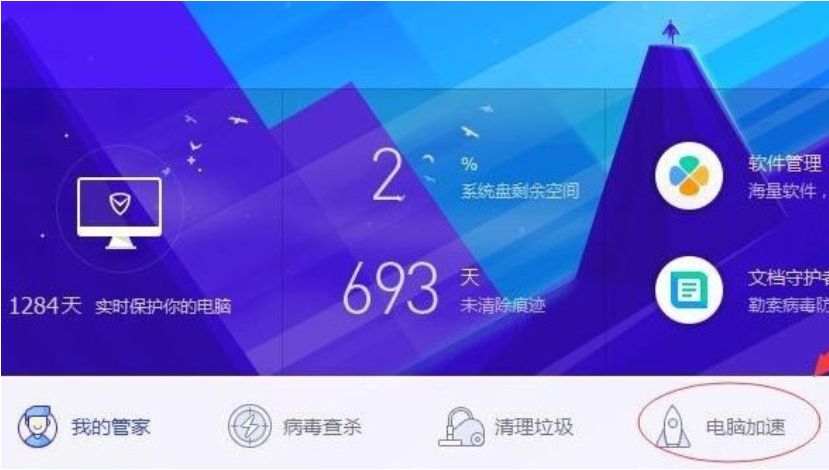 1、 另外,还也可以使用第三份安全软件来设置电脑开机启动项,点击“电脑加速”