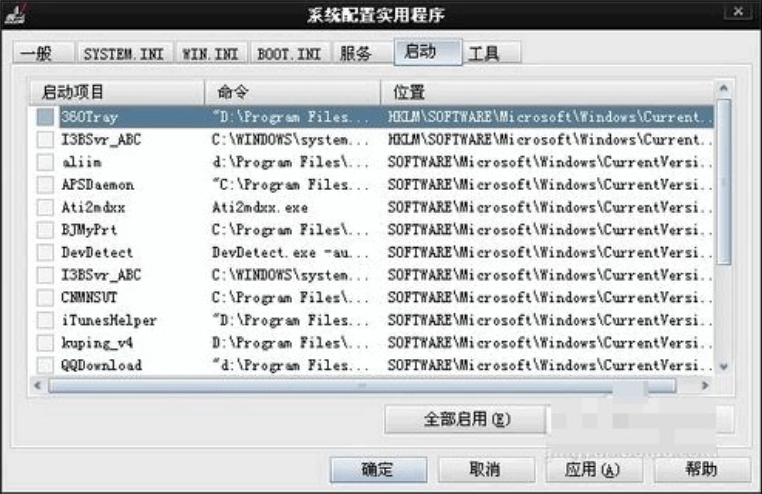 3、 接着,你就可以根据自己的需要,来启用和禁用window开机启动项了