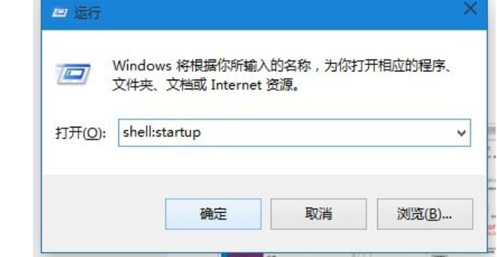 3、 或者,你也可以通过运行窗口,输入“shell:startup”打开启动文件夹