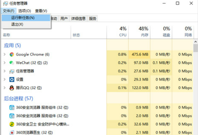 2.找到左上角的文件,点击“运行新任务”;