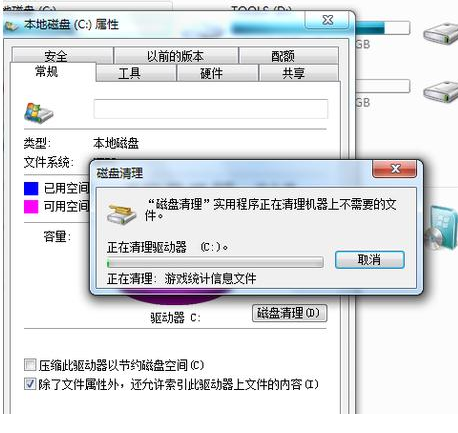 6、这时程序正在清理这些我们选择的文件,清理完成之后,C盘空间就会多出很大一部分了。