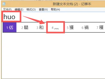 2、如果是用拼音输入法,打出"huo",按键盘上的“+”,这里小编按了三次+号,然后第4个就是四点底“灬”了。