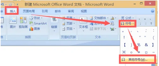 4、也可以通过word文档里查找到四点底灬符号,打开word,点击“插入”→“符号”→“其他符号”。