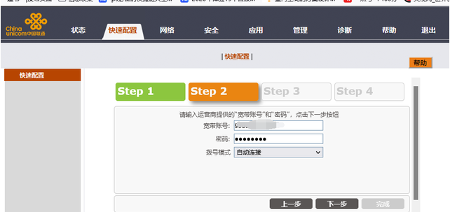 3、进入step1,点击下一步,进入step2里。这时就可以查看到宽带账号和密码信息了。