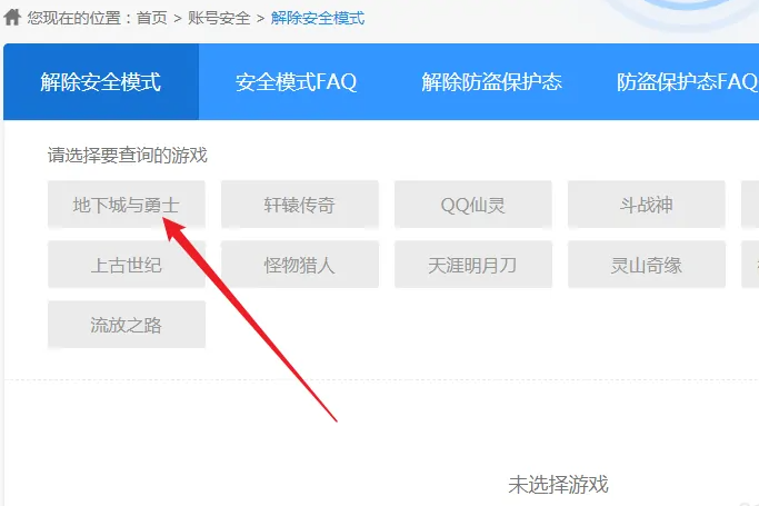 2、然后根据提示登陆需要解除安全模式的游戏帐号。