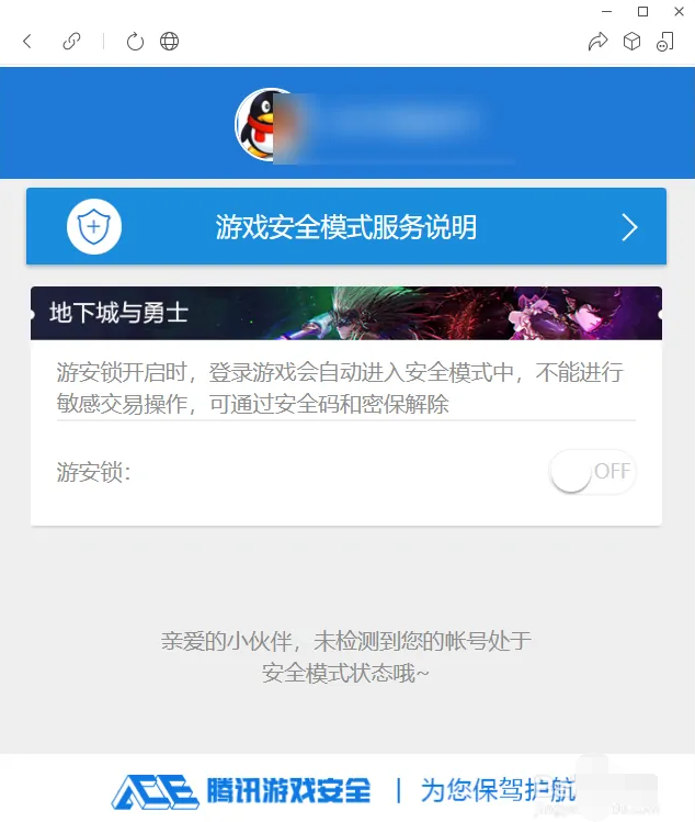 5、在功能界面,按照提示解除dnf游戏的安全模式。