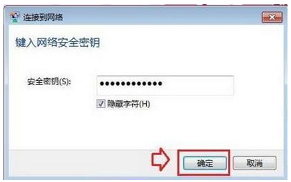 3、再输入网络安全秘钥,也就是输入Wifi密码,输入完成后“确定“即可。