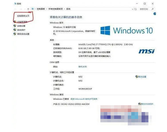 2、在弹出的属性页面中,找到左上方的控制面板主页,点击它打开控制面板界面。