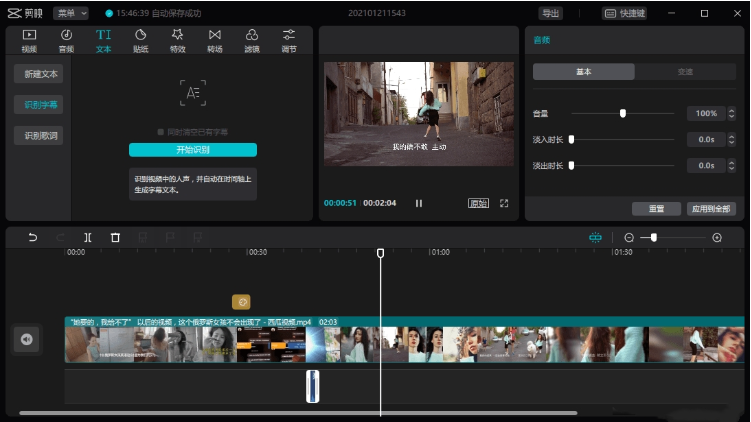 电脑端的剪映软件基本就是手机的放大版,剪辑功能都覆盖,最好用的还是字幕识别功能。相比于其他软件需要导入字幕文件,才能实现视频添加字幕。剪辑就方便很多,它可以直接视频视频内容,并把字幕对应在相应的视频处。
