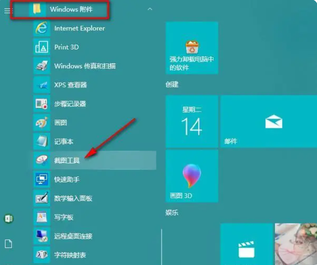 1、一般的Windows系统都自带有截图工具,只需要依次点击开始菜单——windows附件——截图工具,即可找到。