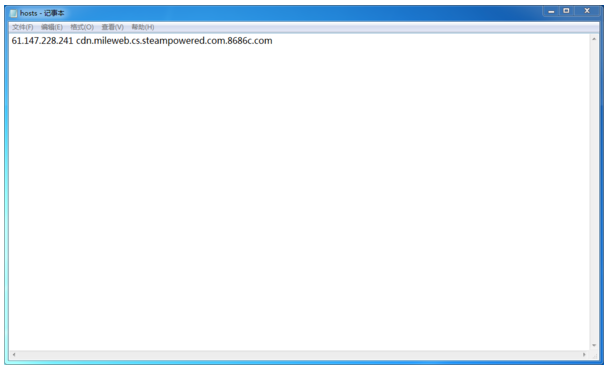 3、系统就会弹出电脑当中的hosts文件,在该文件当中输入【61.147.228.241 cdn.mileweb.cs.steampowered.com.8686c.com】,然后进行保存即可。
