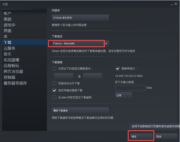 方法三:手动调节steam软件内的下载速度