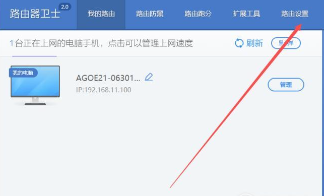 3、然后在个人管理页面,点击右上角的“路由设置”进入设置页面。