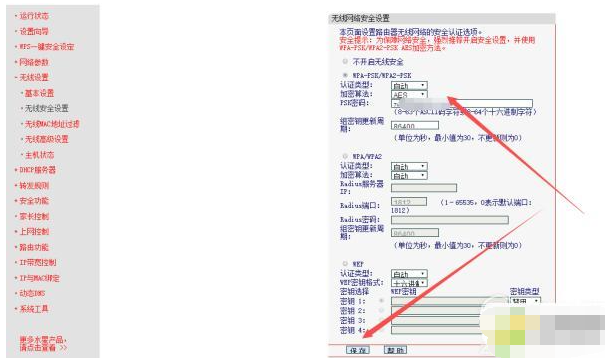 5、用鼠标点击无线密码,把原来的密码全部删除。删除之后重新输入自己新的无线wifi密码,点击下面的保存即可修改完成。