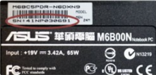 方法一:通过华硕电脑背面标签查看