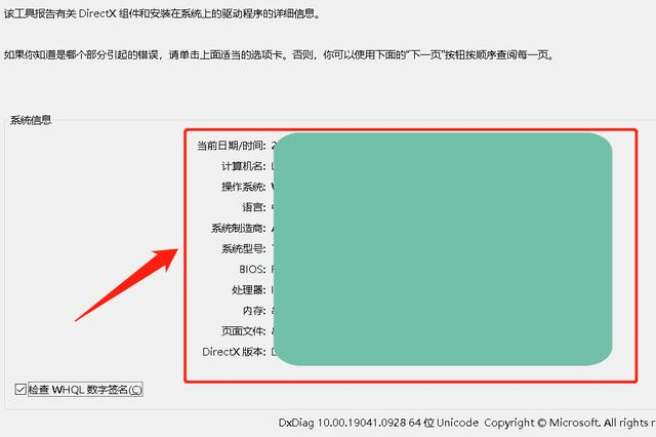2、等候约3~5秒,会弹出directX界面。其中包含了电脑的计算机名称、系统版本、制造商、系统型号等信息。