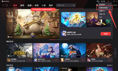 1.一开始我们先下载一个腾讯手游助手,下载安装完成后,进入模拟器主界面,点击右上角图标选择“本地APK安装”按钮。