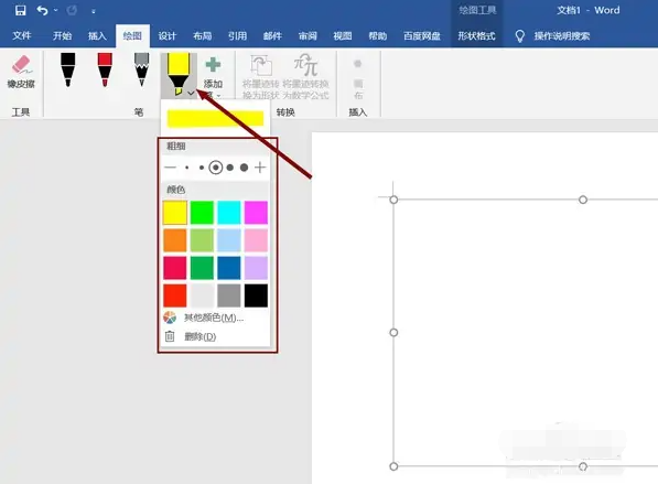 3、功能栏点击如笔的三角图标,就可以调节颜色和笔的粗细。