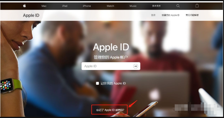 1、iPhone出现激活锁忘记apple id账号密码的话,大家可以考虑前往苹果官网找回或者重置id密码,点击【忘记了apple id或密码?】。根据操作步骤提示,填写相关的信息就可以找回apple id密码。