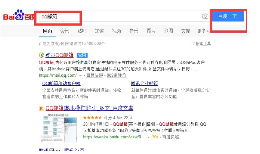 1、先在百度中输入“qq邮箱”,单击“百度一下”