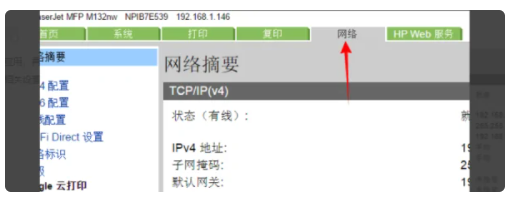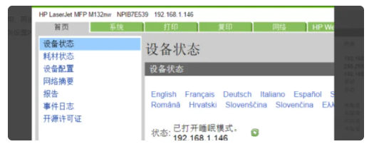 3.在浏览器中输入http://打印机名或IP地址打开打印机设置界面。