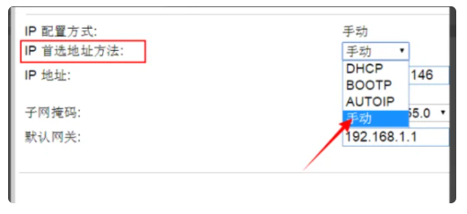 6.把“IP 首选地址方法”修改成【手动】。