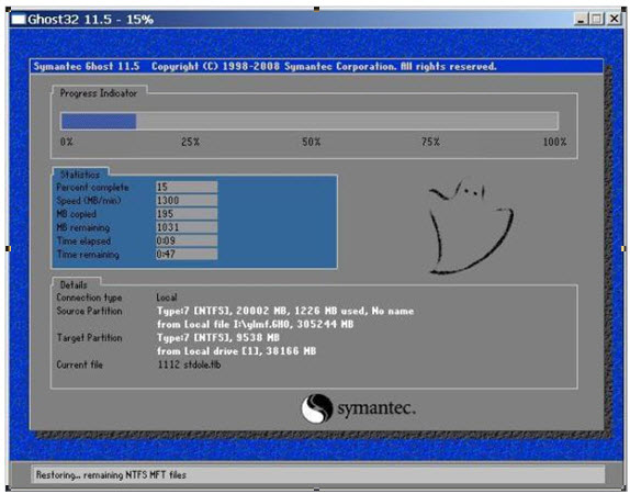 ],点“OK”就可以开始Ghost装系统了,弹出界面如下图: