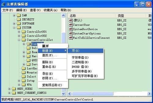 3、新建方法。右键点击“Control”,然后依次点击新建--项,然后把新建的重命名为”StorageDevicePolicies”。