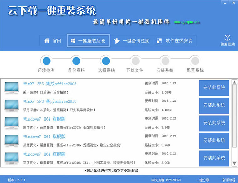 综上所述的全部内容就是小编为大家带来的云下载一键重装系统教程了。对云下载一键重装系统感兴趣的网友。都可以自行去网上下载云下载一键重装系统软件,看着小编带来的云下载一键重装系统教程。就能完美的安装系统了。最后祝大家都能完美的安装系统。