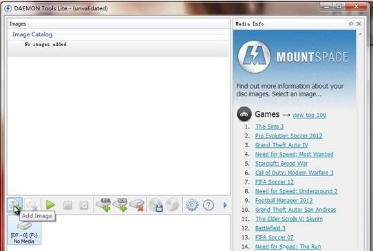 1.首先下载安装DAEMON Tools这款软件(我这里用的是英文试用版),然后双击打开该软件,点击软件界面下方的“Add Image”按钮,进入下一步。