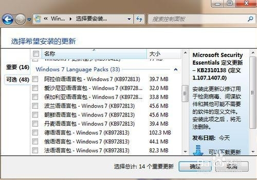 点击"下载可用更新"-> 找到英语语言包->打勾->确定安装更新(即最后一项位英语,打上钩下载并安装它)