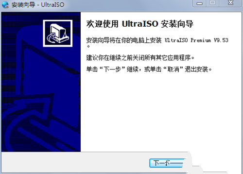 1、首先下载UltraISO软件,双击打开安装,点击“下一步”,如图所示: