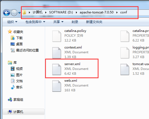 1、找到tomcat的主目录,进入conf文件夹,找到server.xml文件,并打开。
