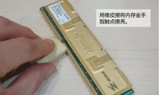 将内存条从主板上拔下来,然后可以选择用橡皮擦拭金手指部分(注意不可沾水)。重新插回主板,开机。还是不行可以换一个内存插槽尝试,基本上就能够解决大部分的蓝屏问题。