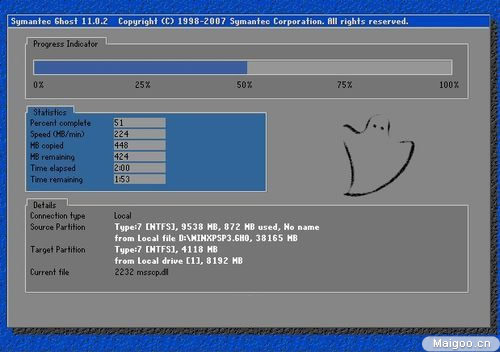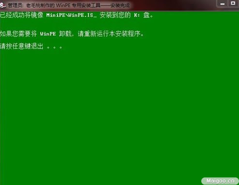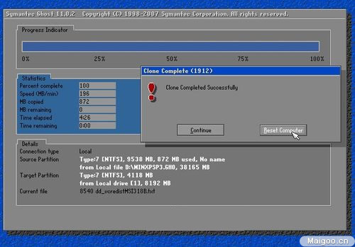 5.当GHOST镜像恢复完毕后,即可重启进入系统。至此,用U盘安装操作系统完毕!你可以忘掉没有光驱无法安装操作系统的烦恼了。值得一提的是,由于整个过程都是在硬盘里读取数据,所以在安装速度上比用光盘安装快很多。