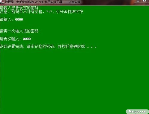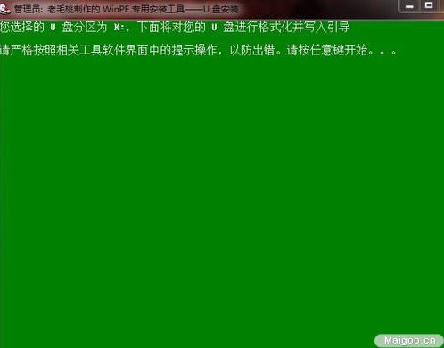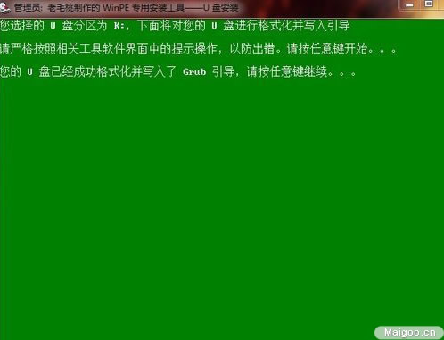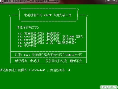1.首先是制作一个能启动电脑的带WindowsPE的启动U盘。先下载一个叫“老毛桃WinPE”的工具到硬盘里,再把U盘接在电脑上,把我们下载的ISO文件解压,解压后运行SETUP这个文件中的“PESETUP”然后按下面的步骤一步步来就可以制作一个能启动的U盘了。选第4项,然后回车输入U盘的盘符,然后回车来到格式化步骤,按默认的设置,点“开始”就行顺利格式化,关掉格式化窗口引导部分。这里要说明一下,在“设备”里有两个选项,一个是电脑的硬盘,一个是要制作的U盘。这里一定要选对U盘而别选错硬盘,从大小就能分出来哪个是U盘。笔者 的U盘是2G的,所以应该选择(hd1)[1898M]。下面的“选项”部分可以不用管,默认不勾选任何参数就行。确认好以上步骤后,点“安装”然后进行 下一步。写入引导完毕,按任意键继续要给启动U盘设个密码。本来笔者不想设置启动U盘的密码,但这个步骤不能跳过,所以没办法只好设了一个密码。设置完后,一定要牢记你设好的密码,否则启动U盘会无法使用,制作完毕。当你完成以上步骤后,恭喜,一个具有启动功能的U盘已经来到你的身边。你再也不用心烦没有光驱不能从光驱启动了,因为以后你可以从U盘启动再安装操作系统!想知道怎么操作吗?下一页就开始。