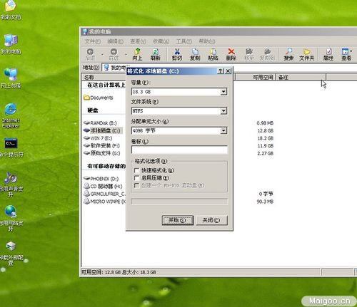 3.用能启动的U盘安装XP,先把具备启动功能的U盘接上电脑启动电脑,启动电脑后,会要求你输入启动U盘的密码,也就是前文在制作这个启动U盘时设置的密码。当你输入正确的密码后,即可看到一个选择菜单,选择“WinPE By:MAOTAO”。进入WinPE,然后就会进入一个运行在U盘上(不是运行在电脑的硬盘上)的迷你操作系统WinPE,它具备很多类似XP的功能,有了它我们就可以对电脑随心所欲了。可以对C盘进行格式化,怎么个随心所欲法?能直接对C盘进行格式化操作,这个够震撼了吧?在安装新的XP前,我们先对C盘进行格式化操作。用U盘上的WinPE把电脑里的C盘格式化后,请出虚拟光驱来接着帮忙。运行在U盘上的WinPE自带了一个虚拟光驱载入XP光盘的镜像,我们选择的是一个deepin出品的ghost版本的光盘镜像,由大名鼎鼎的“8分钟快装版6.5”光盘制作而成。如果有光驱,只要把这个“8分钟快装版6.5”光盘放到光驱里直接安装就行,但由于没有光驱,所以我们费了一些周折来安装这个系统。用虚拟光驱载入系统镜像后会多出一个驱动器。我们看到,在用虚拟光驱载入系统镜像后,“我的电脑”目录里多了一个GHOSTXP-6.5NTFS的驱动器盘符。这就是我们即将要安装的系统所在位置。
