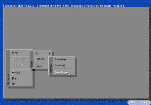 4.启动WinPe的Ghost.,接着我们启动另外一个WinPE自带的软件诺顿Ghost。用它来把系统的ghost镜像恢复到之前被格式化的电脑的C盘里。跟平时使用GHOST的步骤没什么两样,启动GHOST后,使用方法就和通常使用GHOST来恢复系统没什么区别了。找到镜像文件(这个文件是从镜像文件里解压或者从光盘复制,要放到分区或U盘的根目录)选择要恢复的磁盘选择要恢复到的分区前面都选择好之后,会弹出一个对话框问你是否要将指定的GHO镜像恢复到电脑的C盘去,点击yes就可以。正在恢复恢复完成重新启动计算机。