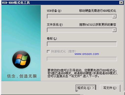 注:格式化将清除所有数据,请实现备份好您的文件。本程序至少需要U盘空间80M。