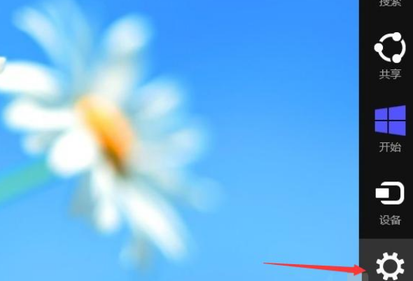 1、将鼠标放在桌面的右上角,然后在弹出菜单中选择设置。