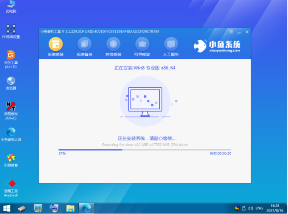 6、在pe内,软件会自动开始安装win8系统。