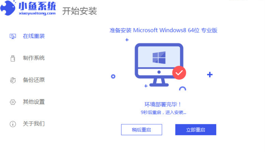 3、当系统下载好之后进行环境部署操作,完成之后点击页面中的立即重启按钮。