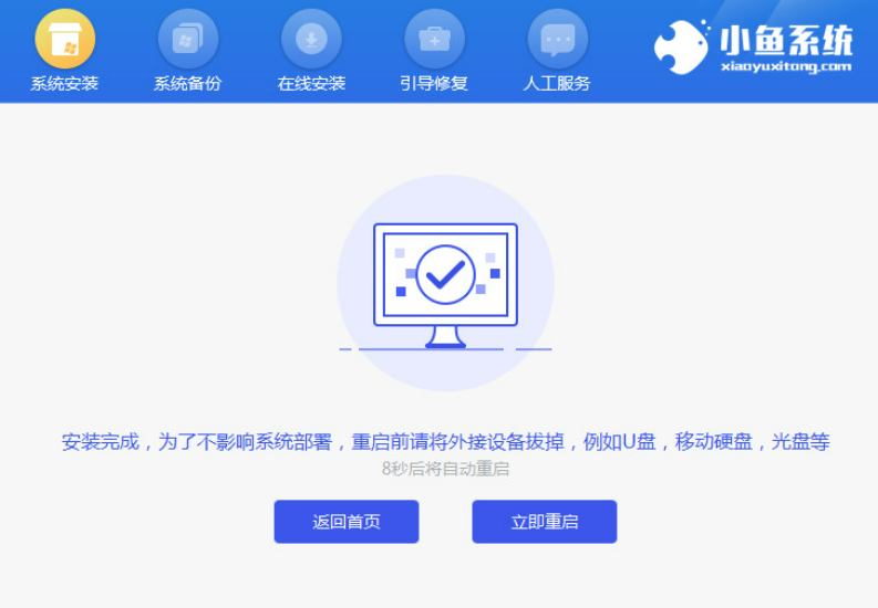 6、当系统完成之后我们再次重启电脑操作。