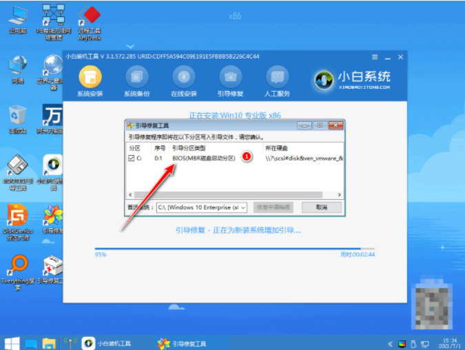 5、此时硬盘分区,修复引导。