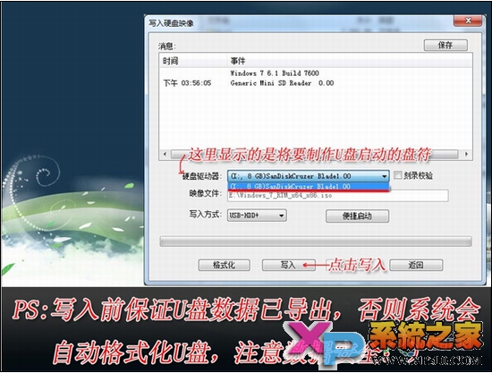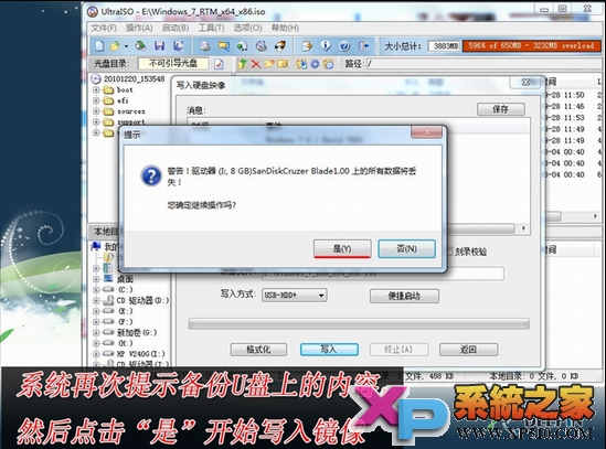 3、写入前保证U盘上面的文件已经备份,不然在写入之前系统会自动格式化U盘。